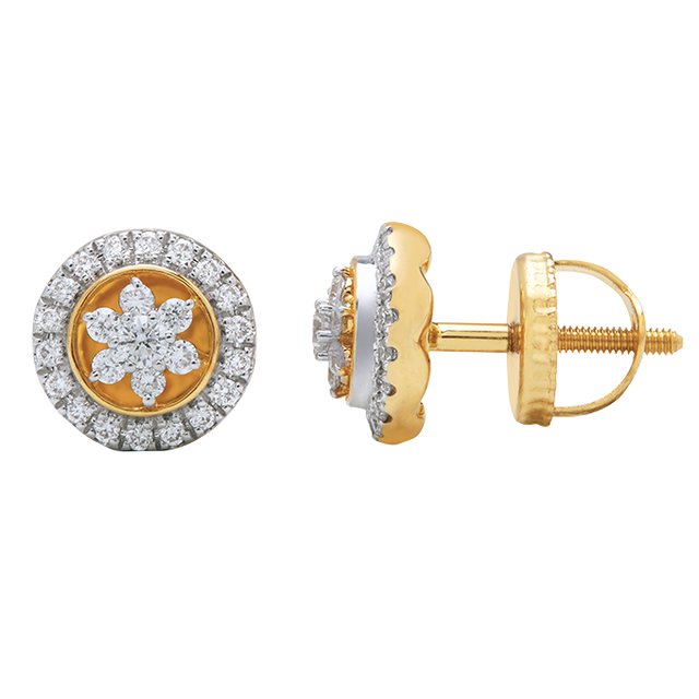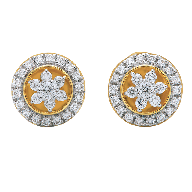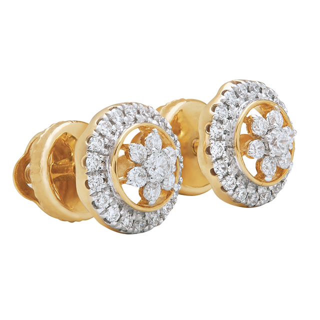 Soft curves and delicate details come together in the Bloom Circle Studs. A cluster of diamonds blooms at the center, encircled by a polished round frame that adds balance and brilliance. These studs blend femininity with a modern finish—an effortless addition to your everyday signature.