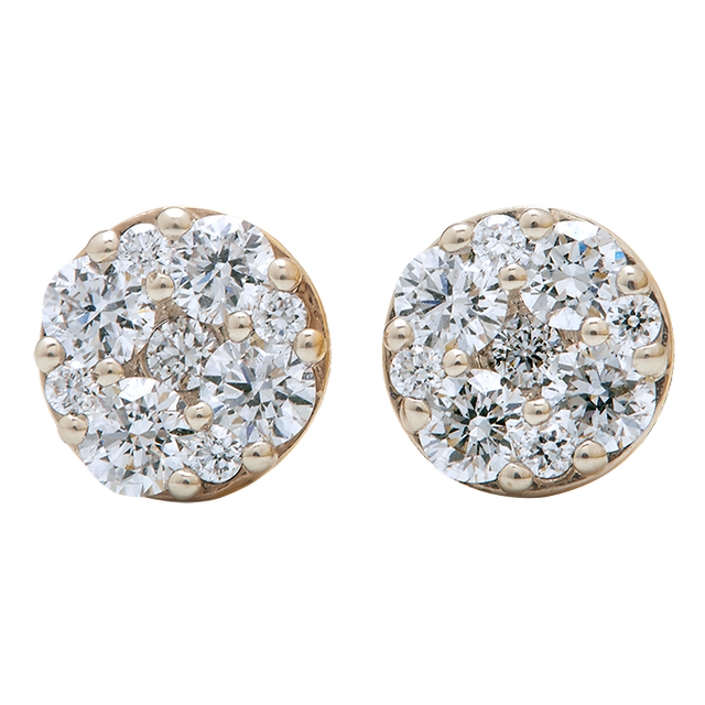 Experience the brilliance of our Close-Knit Solitaire-Look Diamond Studs. These studs are crafted with close-knit round diamonds, designed to mimic the timeless elegance of a solitaire diamond. The intricate setting maximizes the shine of each stone, creating a sophisticated and captivating look.