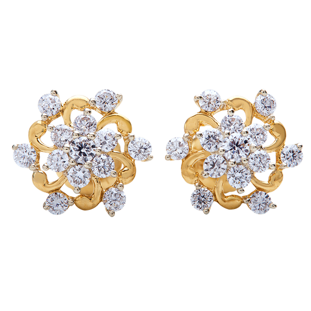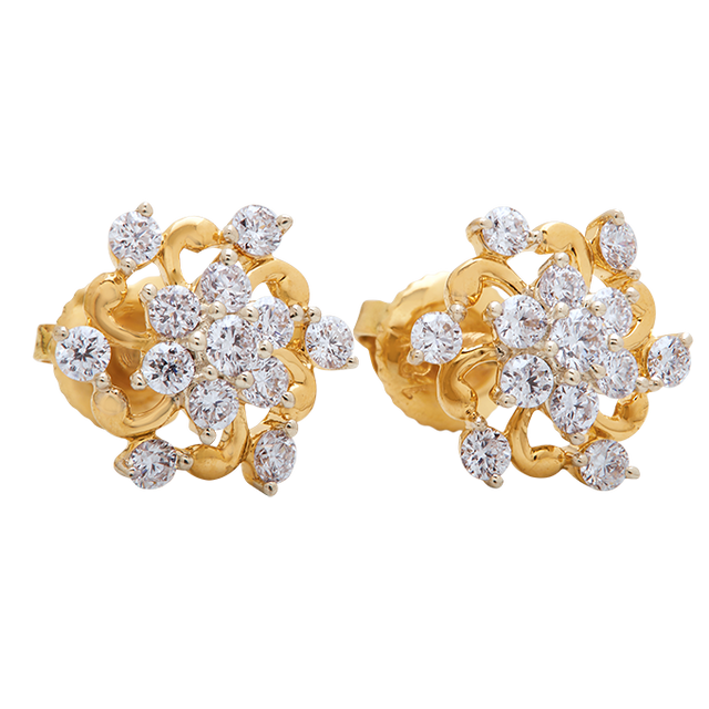 Elevate your everyday elegance with our Glinting Petal Swirl Studs. A floral diamond cluster forms the heart of this design, encased in a sleek gold rim that adds structure and warmth. Surrounding it, a graceful swirl of five brilliant diamonds dances around the edges — a fluid, luminous composition that captures light from every angle.
