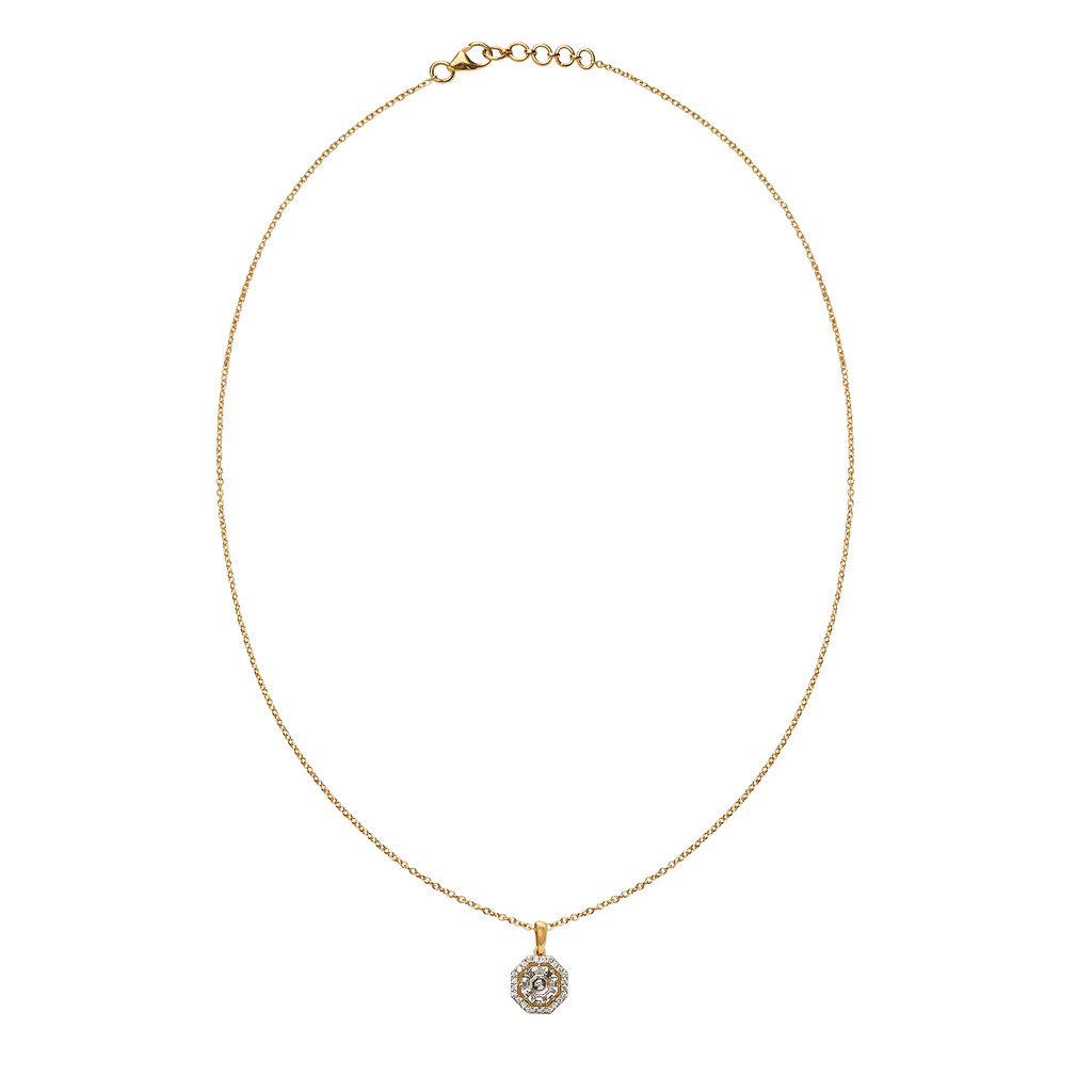Co-created with Dr. Jai Madaan, this piece features the iconic 8-facet Infinity Diamond, inspired by Ashtalakshmi, representing the eight forms of Goddess Lakshmi. Surrounded by a halo of fine diamonds, it amplifies light and meaning – symbolizing divine protection and abundance.
