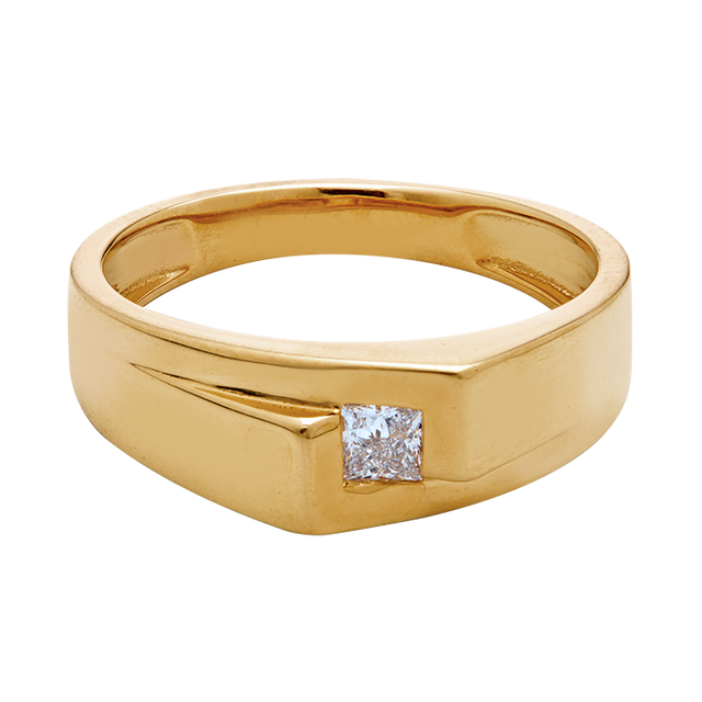 Striking in its simplicity, the Orion Edge Solitaire Ring is crafted in radiant yellow gold with a sharp, angled design that cradles a brilliant diamond. A perfect blend of bold structure and minimal elegance, designed for the modern trailblazer.