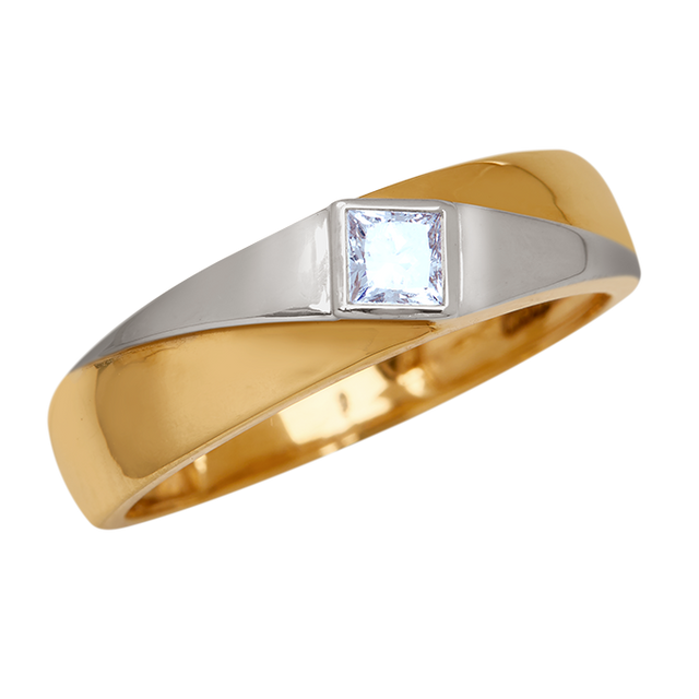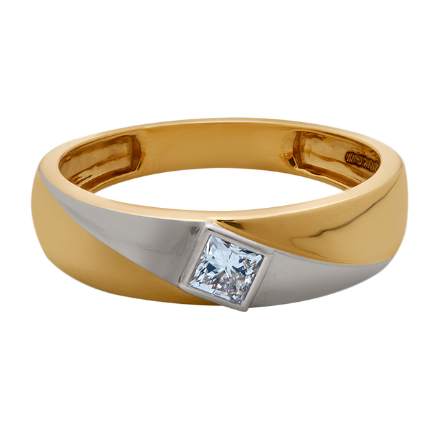 The Regal Square Diamond Men’s Ring is a bold and sophisticated design, crafted from rich yellow gold. At its center lies a striking square diamond, framed by a sleek swish of white gold, creating a dynamic contrast of colors and textures. This ring is a true symbol of strength and style, perfect for the modern man with a taste for timeless elegance.