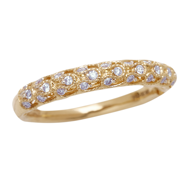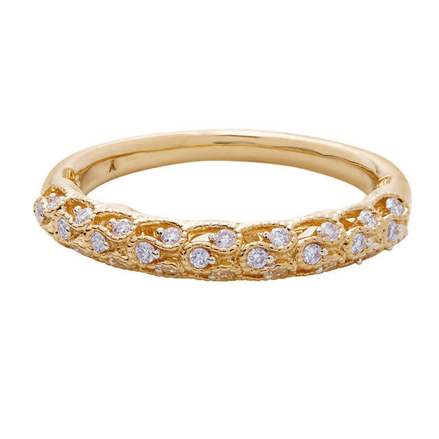 The Textured Diamond Band is a celebration of fine craftsmanship. Featuring a soft, organic texture along the gold band, it’s delicately set with round diamonds that shimmer like stardust scattered across a golden path. Understated, detailed, and eternally refined.