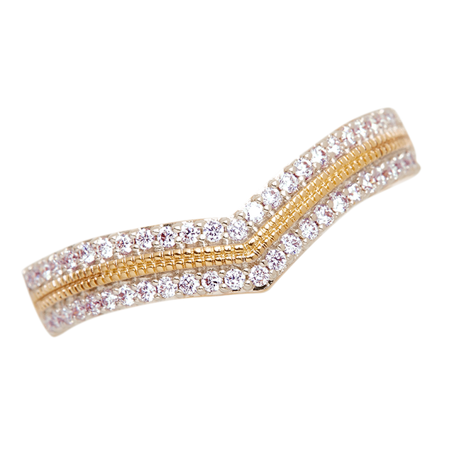 Aukera - V-Shaped Gold Ring with Pave Diamonds