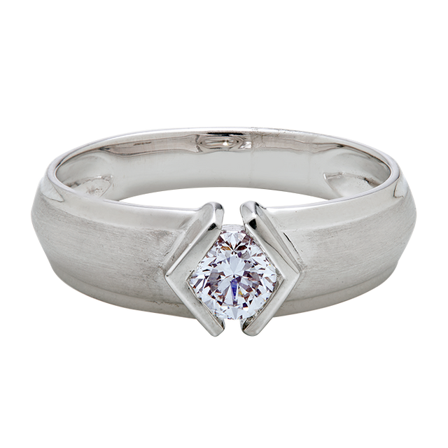 Sleek and contemporary, our White Gold Men's Solitaire Ring features a brilliantly cut diamond held in a bold, angular setting. Crafted in polished white gold with a subtle matte finish, this ring blends strength and sophistication for the modern man.