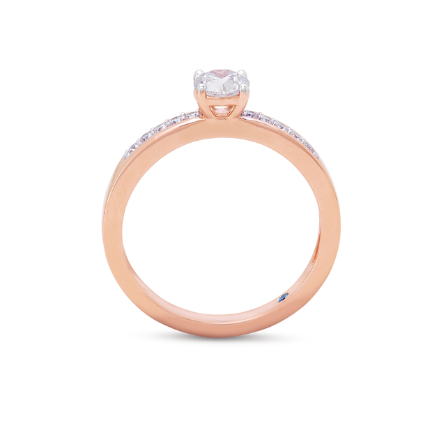 A gorgeous solitaire framed by a row of diamonds on a yellow gold band — luminous, timeless, and made to shine every day.