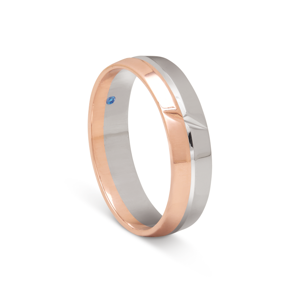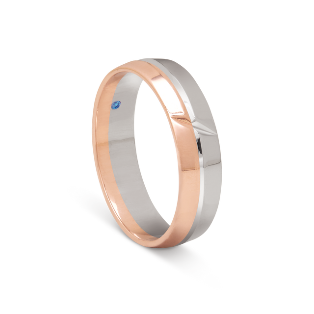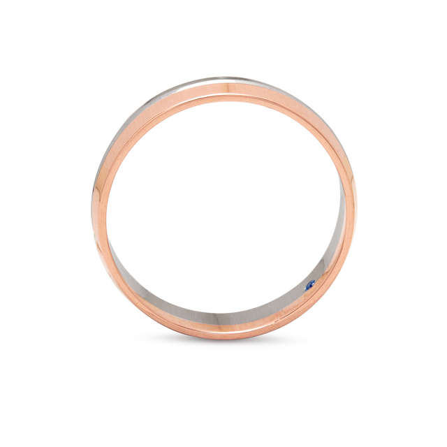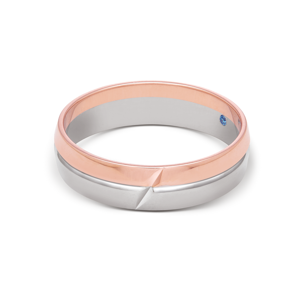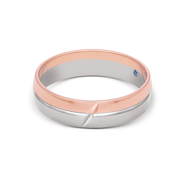 A two-tone white and rose gold band delicately etched with a fine line—where duality meets detail.