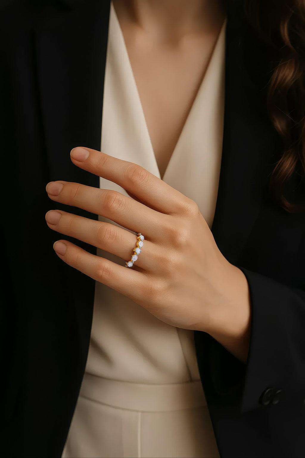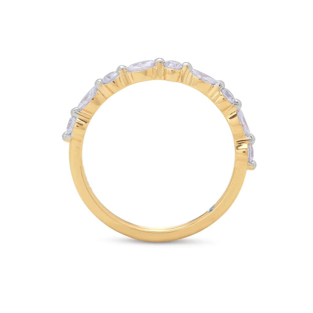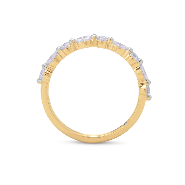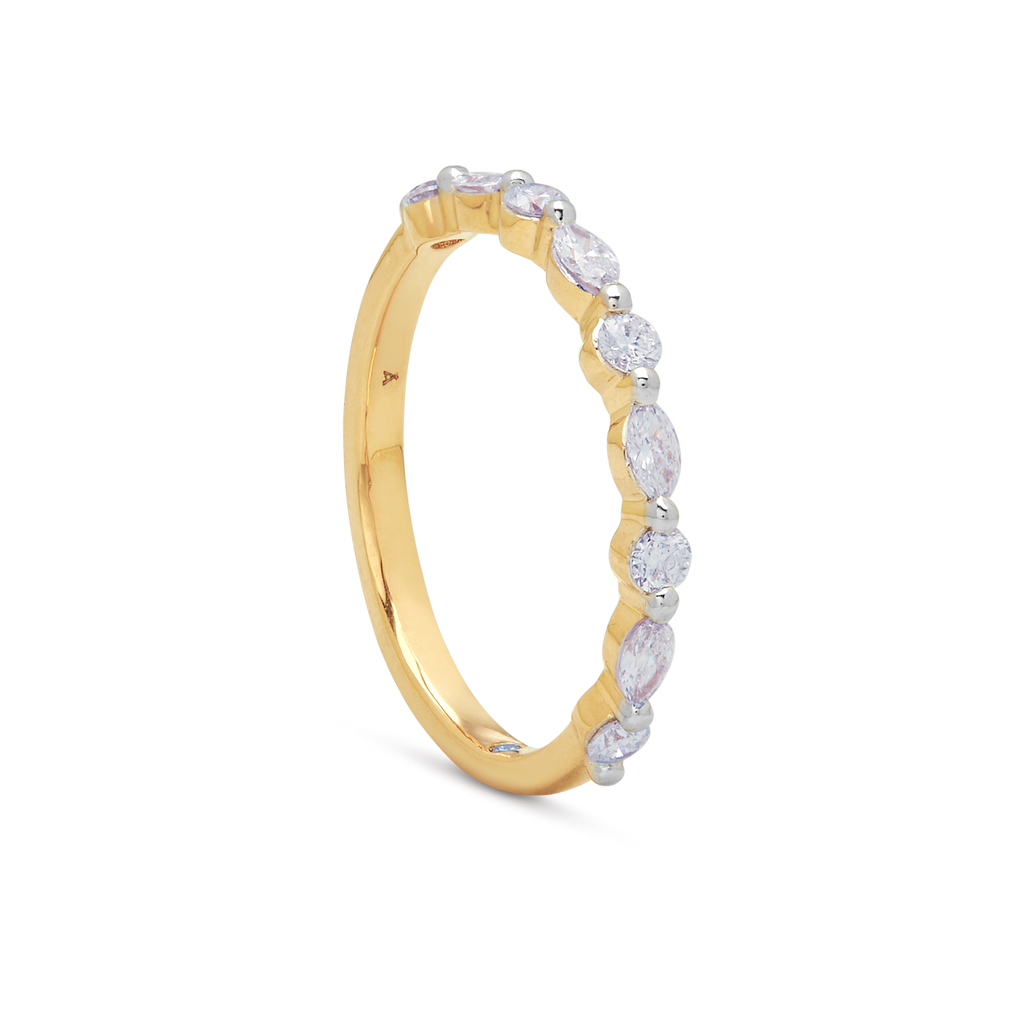 A row of round and oval diamonds, delicately set in yellow gold—each stone choreographed to create a seamless rhythm of light.