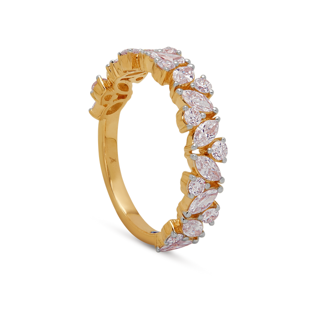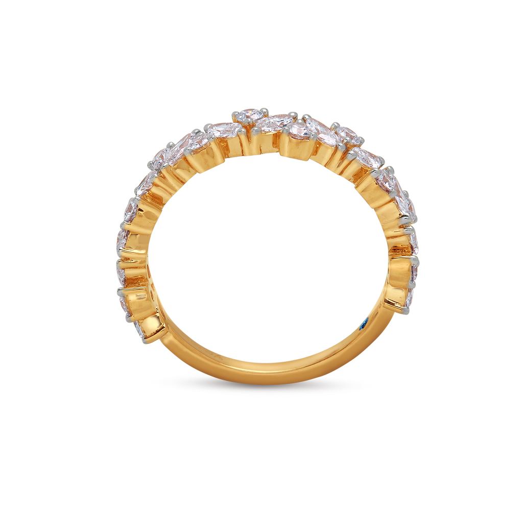 A yellow-gold band set with alternating marquise and round diamonds—petals of light in a blooming flourish.
